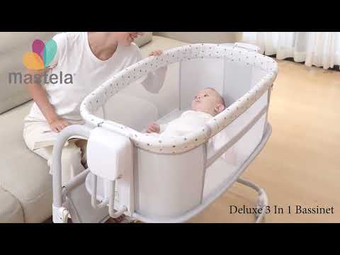 Experience unparalleled comfort and convenience with the Deluxe 3-in-1 Bassinet. From a calm sleeping environment with a mosquito net to versatile use up to 18KG, this bassinet is designed for every stage. The dense, removable mattress is machine washable for easy cleaning, and the four lockable wheels ensure effortless room-to-room mobility. Adjust the height to match most beds and enjoy breathable mesh sides for airflow and visibility. Switch effortlessly between Dream Centre and Play Area with the secure easy lock system. Stay organized with storage pockets, and control settings gently with the touch panel. Soothe your little one with melodies and swing speeds, complemented by timer settings and MP3 compatibility via USB. Connect to your smart device for personalized entertainment, all powered conveniently by a cord. The drop-down side wall keeps your baby close.