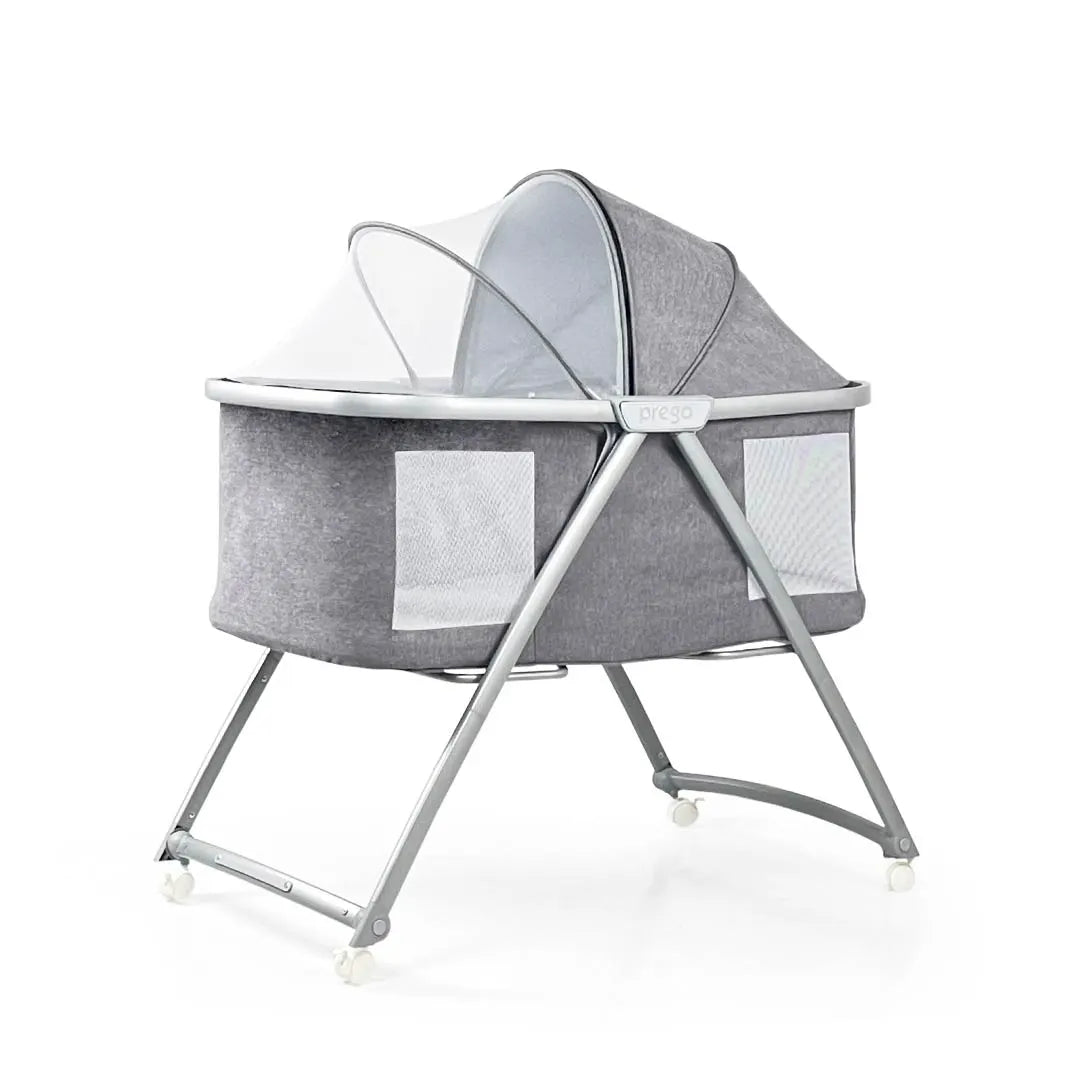 Luna is a versatile bassinet that can be used both bedside and throughout the house. It easily transforms into rocking mode to help soothe your baby to sleep. Crafted with a reinforced aluminum alloy frame, Luna is lightweight for easy portability and resistant to corrosion. It features a specially designed 3cm thick mattress made from 100% cotton, offering a balance of firmness and softness for optimal support.